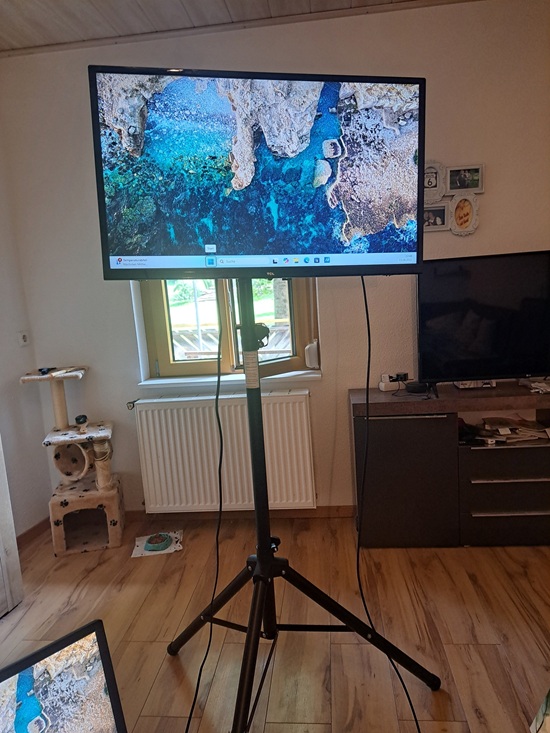 Ein TV auf Stativ, damit auch der Hinterste was sieht